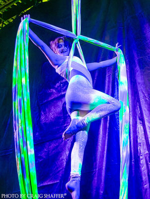 Or we can bring our own 23-foot adjustable, free-standing aerial rig for both indoor and outdoor events—no ceiling required.
